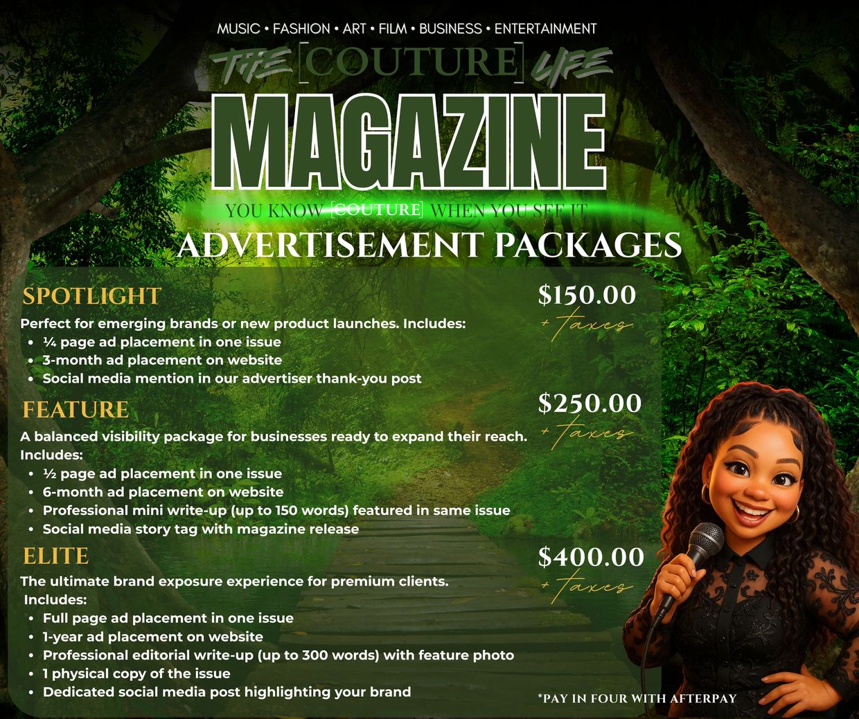 Each ad placement provides brand visibility across our magazine and website, connecting you directly with a vibrant audience that values authenticity, luxury & innovation!